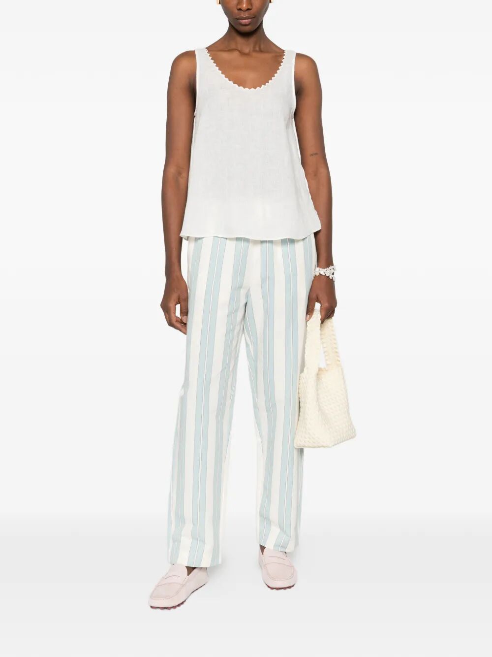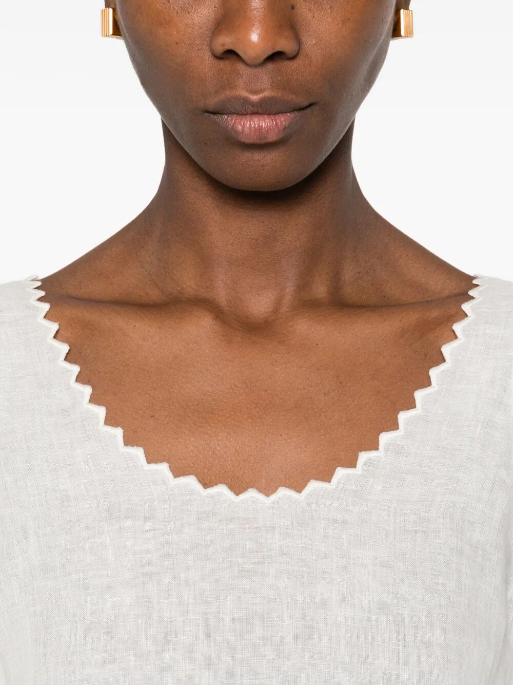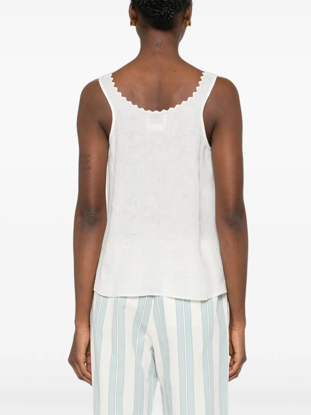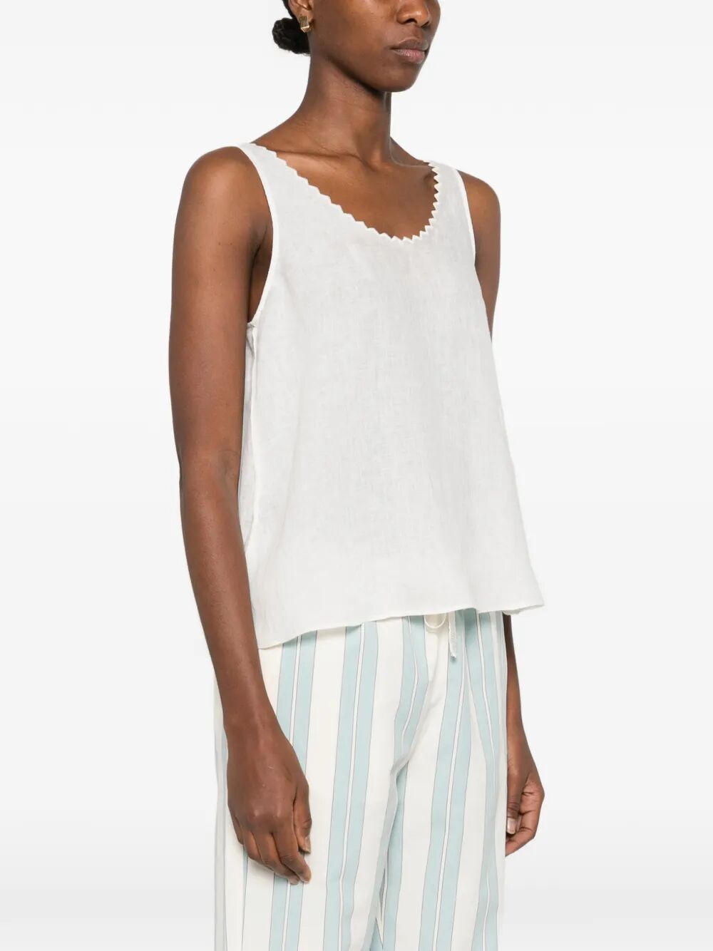 top smanicato bianco, bordo a smerlo